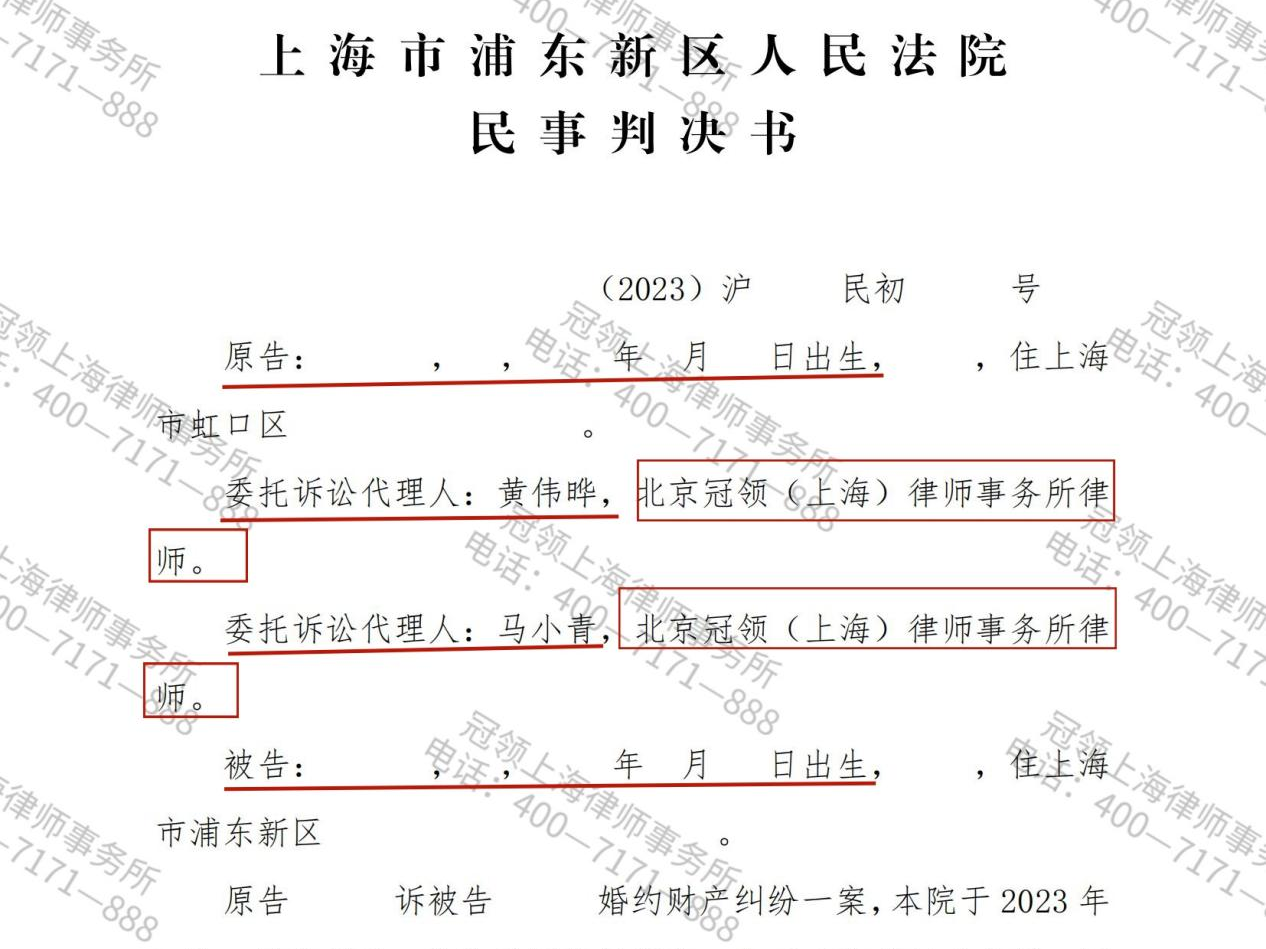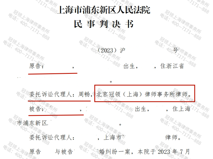 北京冠领律师事务所周旭亮主任、任战敏执行主任督导,周畅律师代理上海浦东新区离婚纠纷案,经上海市浦东新区人民法院审理,作出《民事判决书》,确认解除委托人与女子之间【查看全文】
