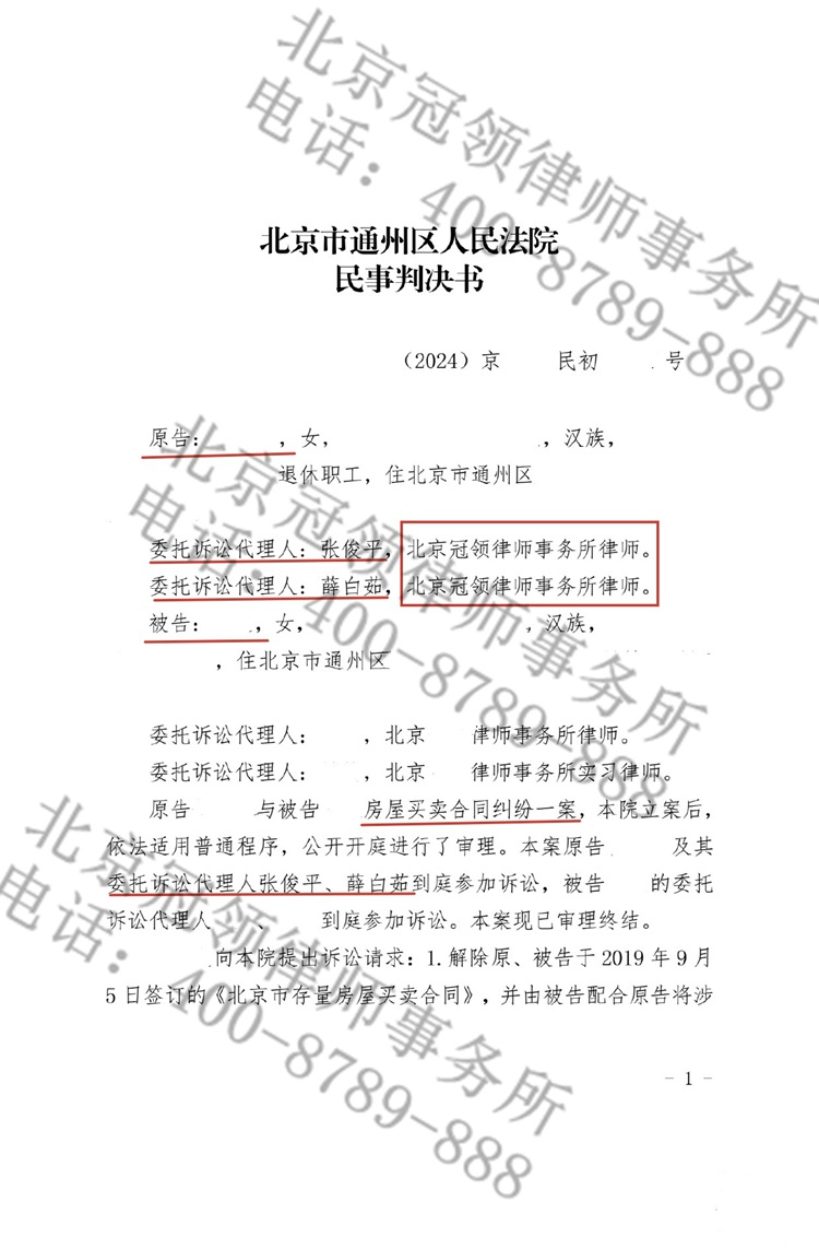 此后4年,小李虽然一直居住在该房内,却始终未支付购房款。李女士多次索要无果,在2023年底求助北京冠领律师事务所。张俊平和薛白茹律师受律所指派代理本案。