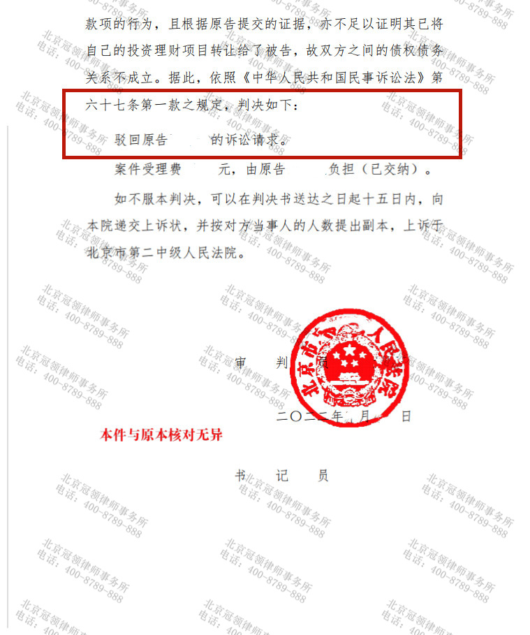 最后,法院采纳了冠领律师的诉讼意见,判决驳回范萌的诉讼请求。